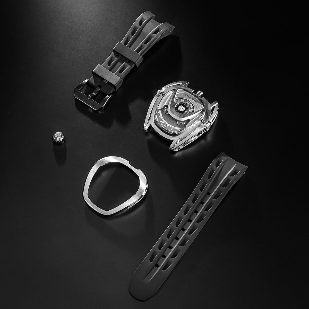 Un movimiento, múltiples identidades. El sistema de liberación rápida permite una intercambiabilidad fluida del bisel y la correa, permitiéndote crear un reloj personalizado con una variedad de materiales y estilos. Desde el ámbito profesional hasta actividades al aire libre, cada cambio representa una renovada expresión de estilo.