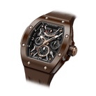 Una esfera mecánica esqueletizada con disposición de triple subesfera — indicadores de 24 horas, día y mes — complementada con ventana de fecha y indicador de reserva de marcha, ofreciendo funcionalidad precisa y un estilo atemporal.
