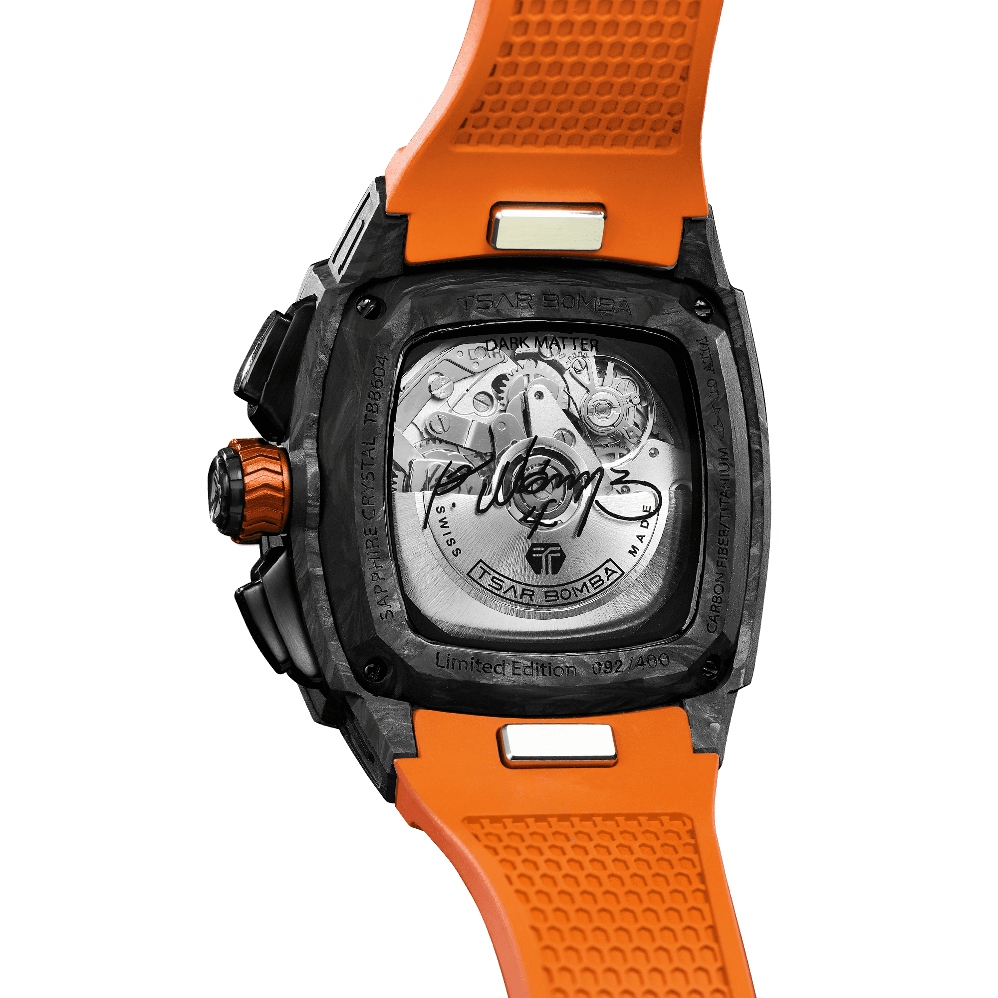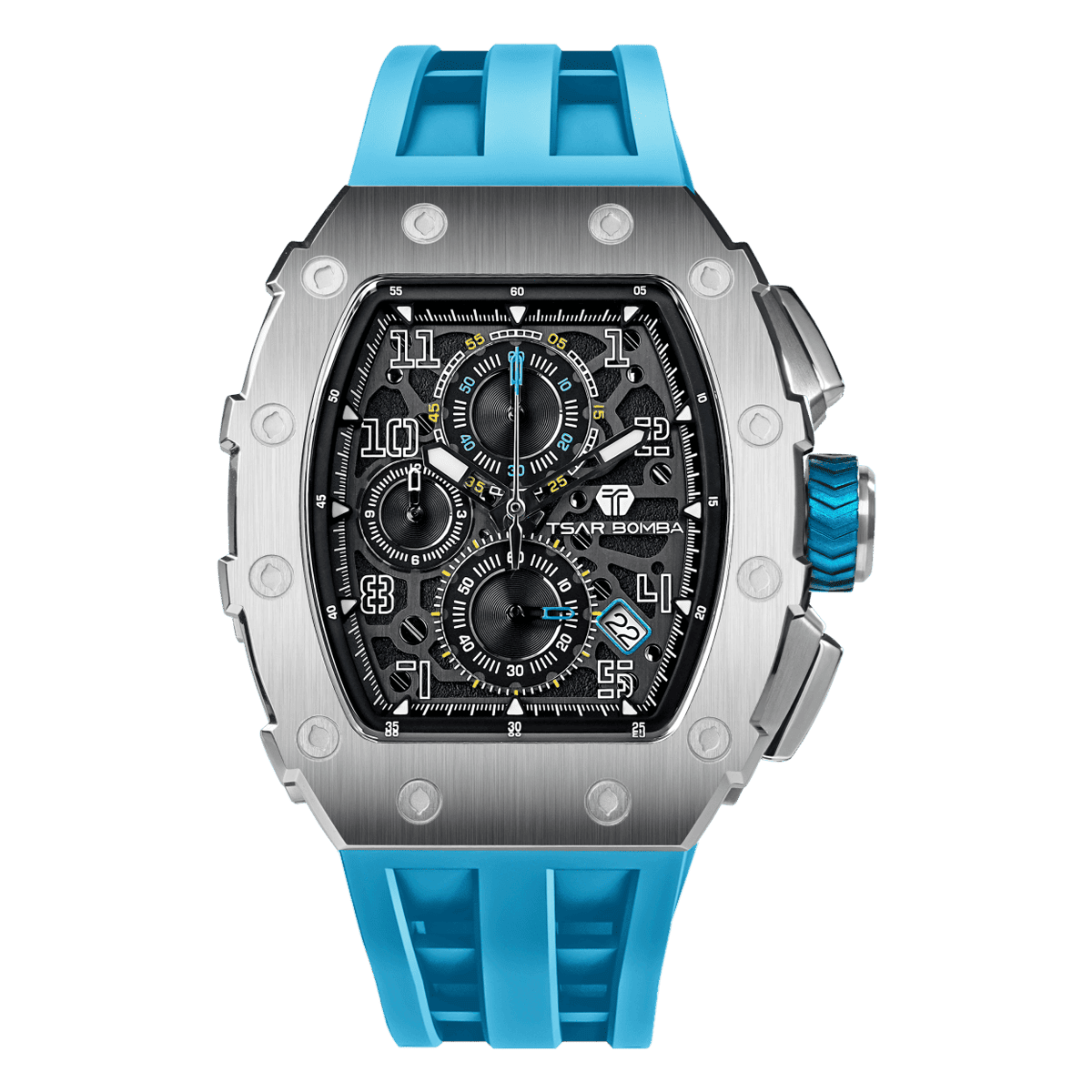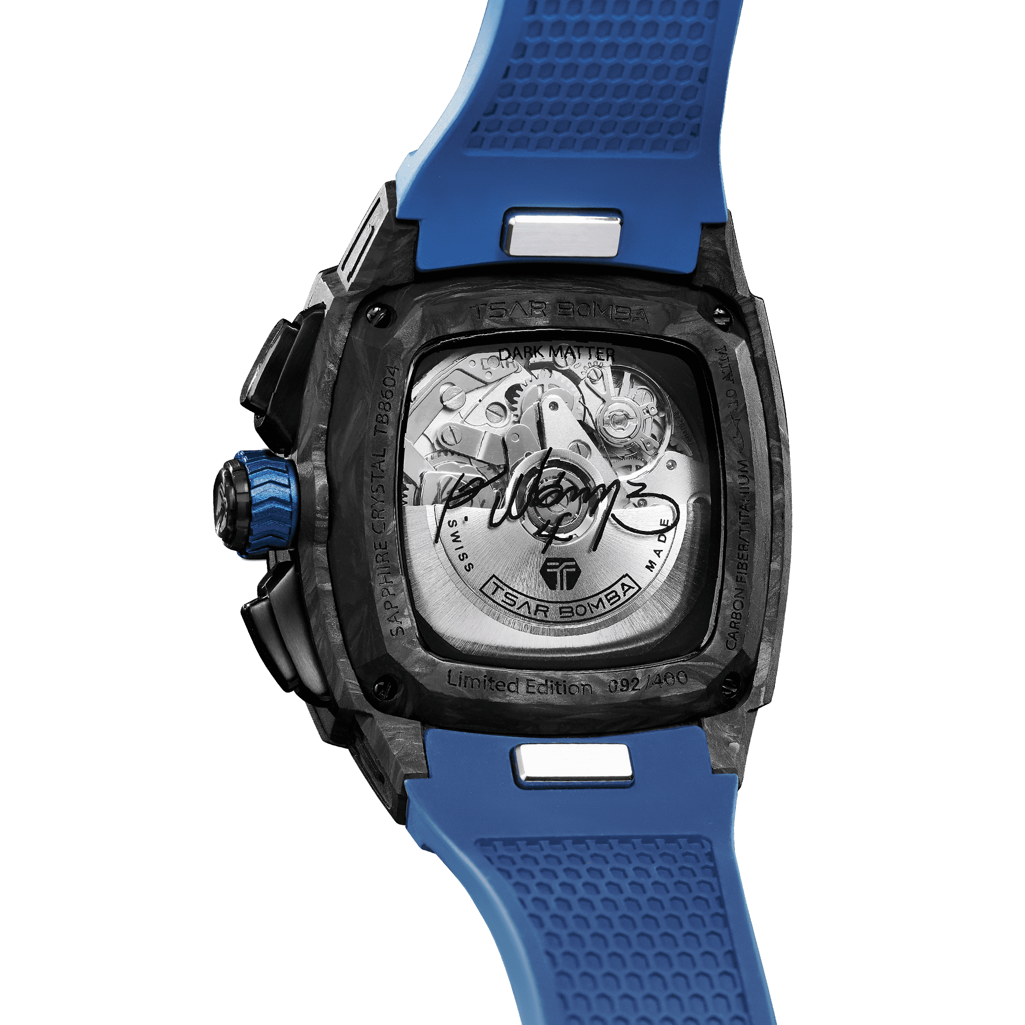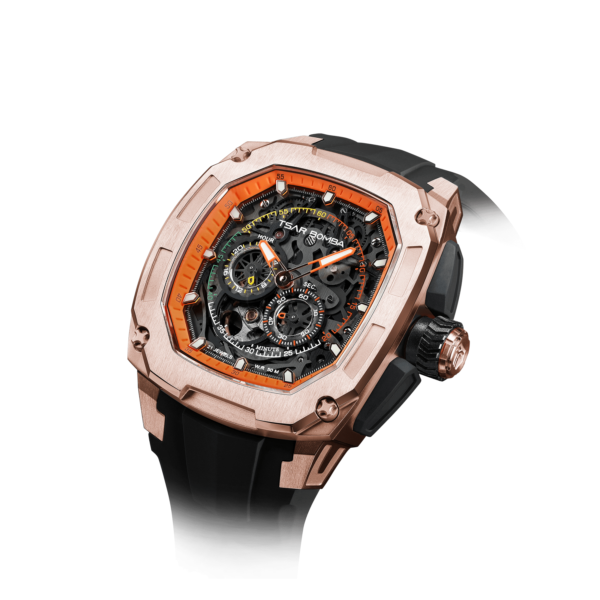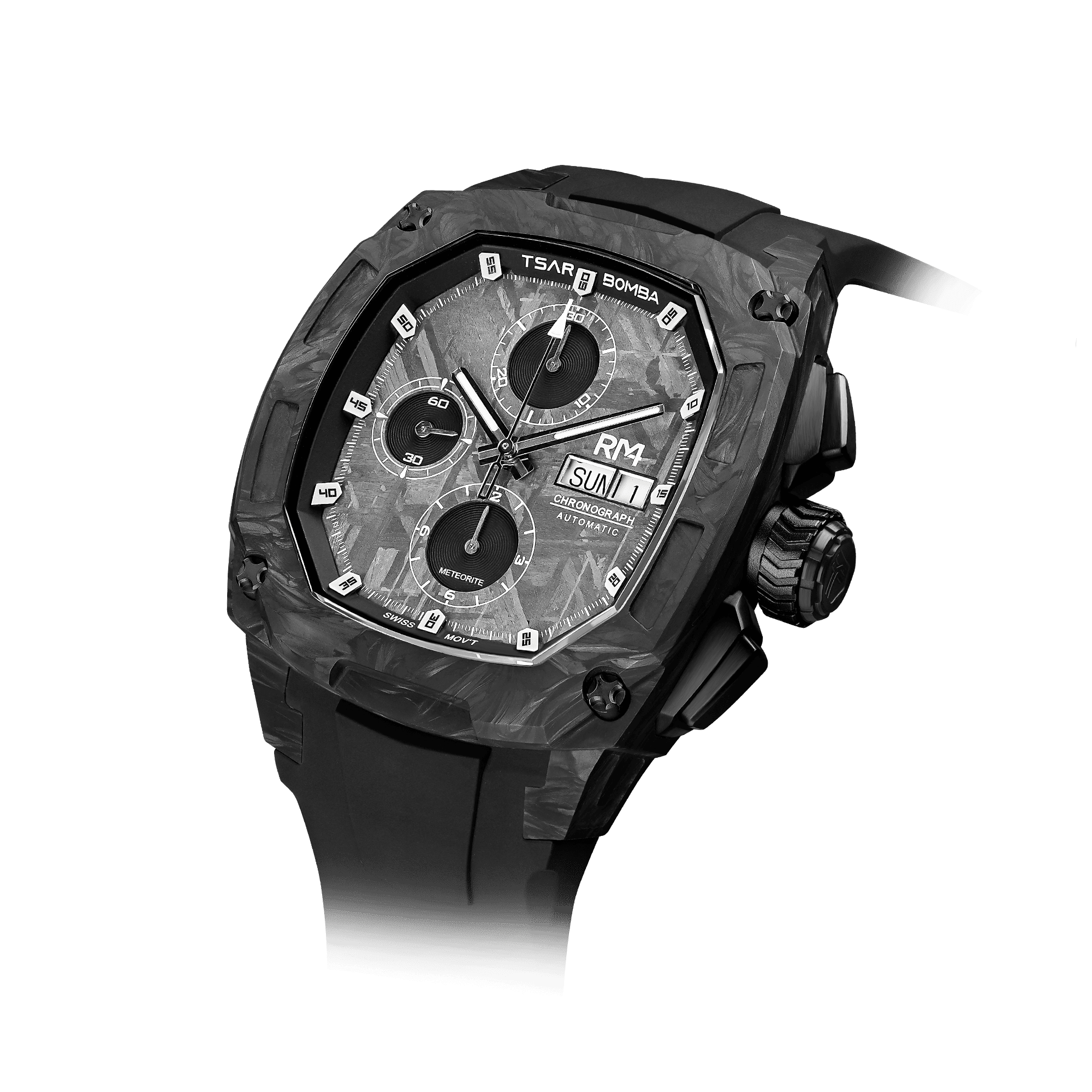 Tsar Bomba une un bisel y cristal frontal de zafiro completo con nuestra caja Chronite®, creando una fortaleza transparente donde el movimiento parece flotar en la luz. Lo que antes era exclusivo, ahora está al alcance de tu muñeca.