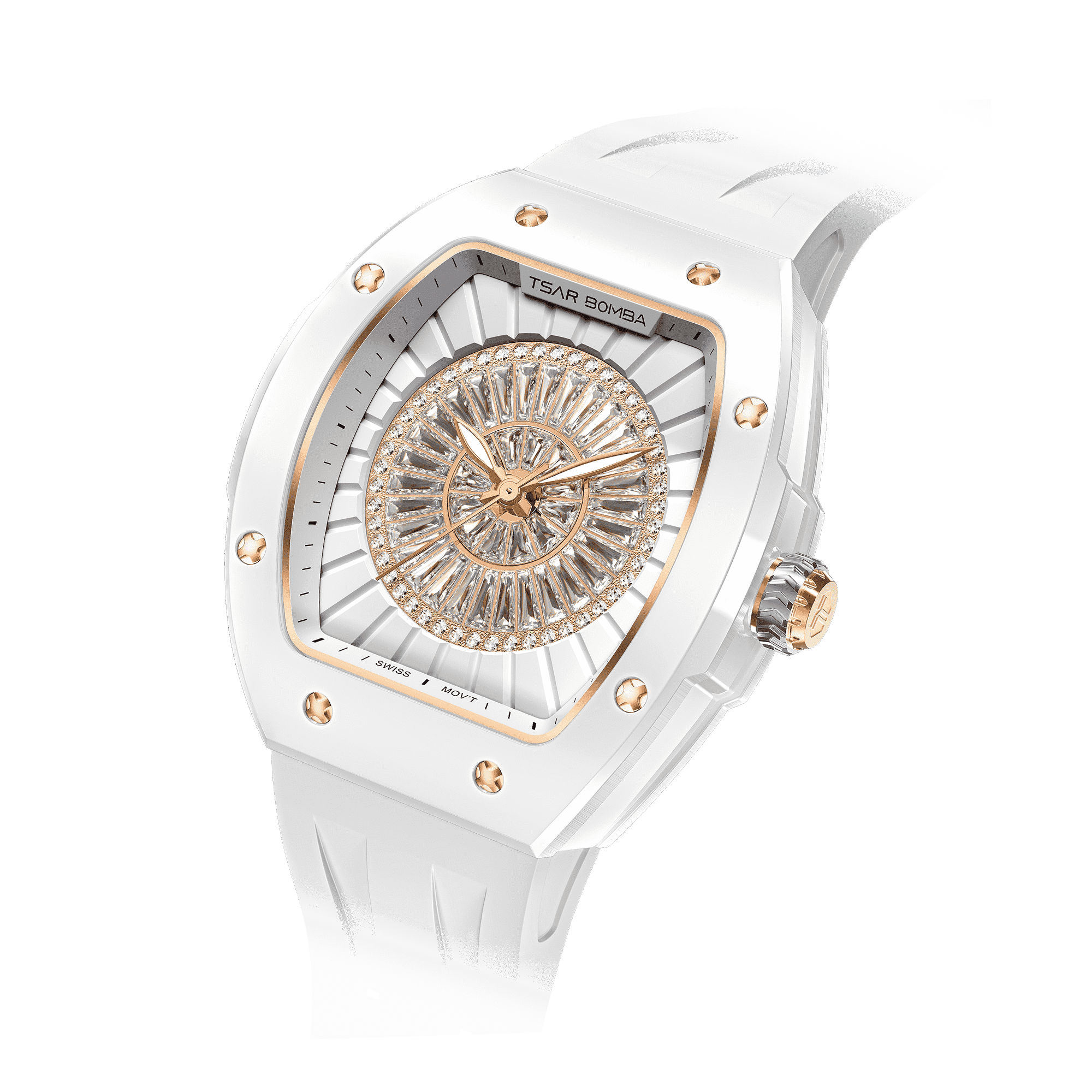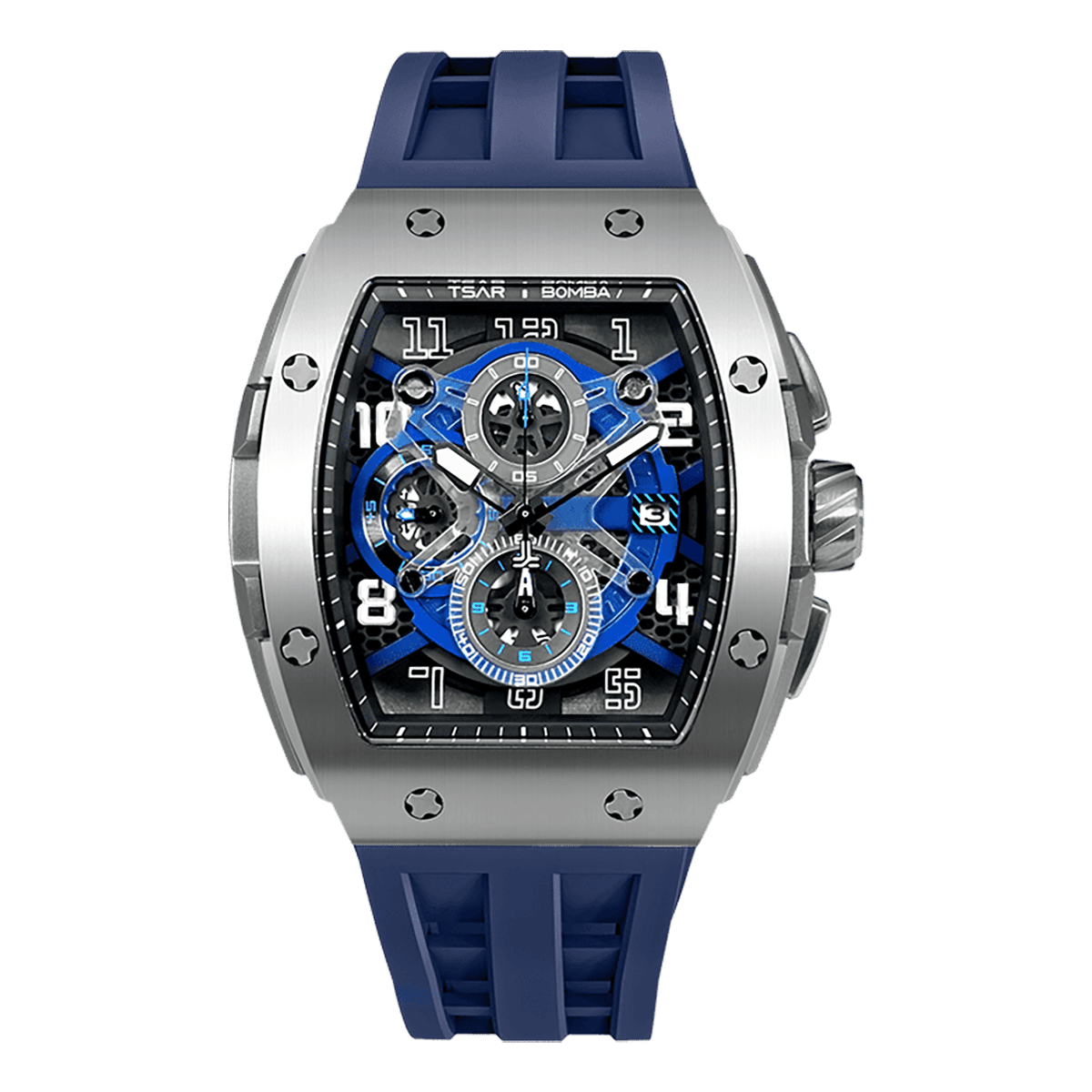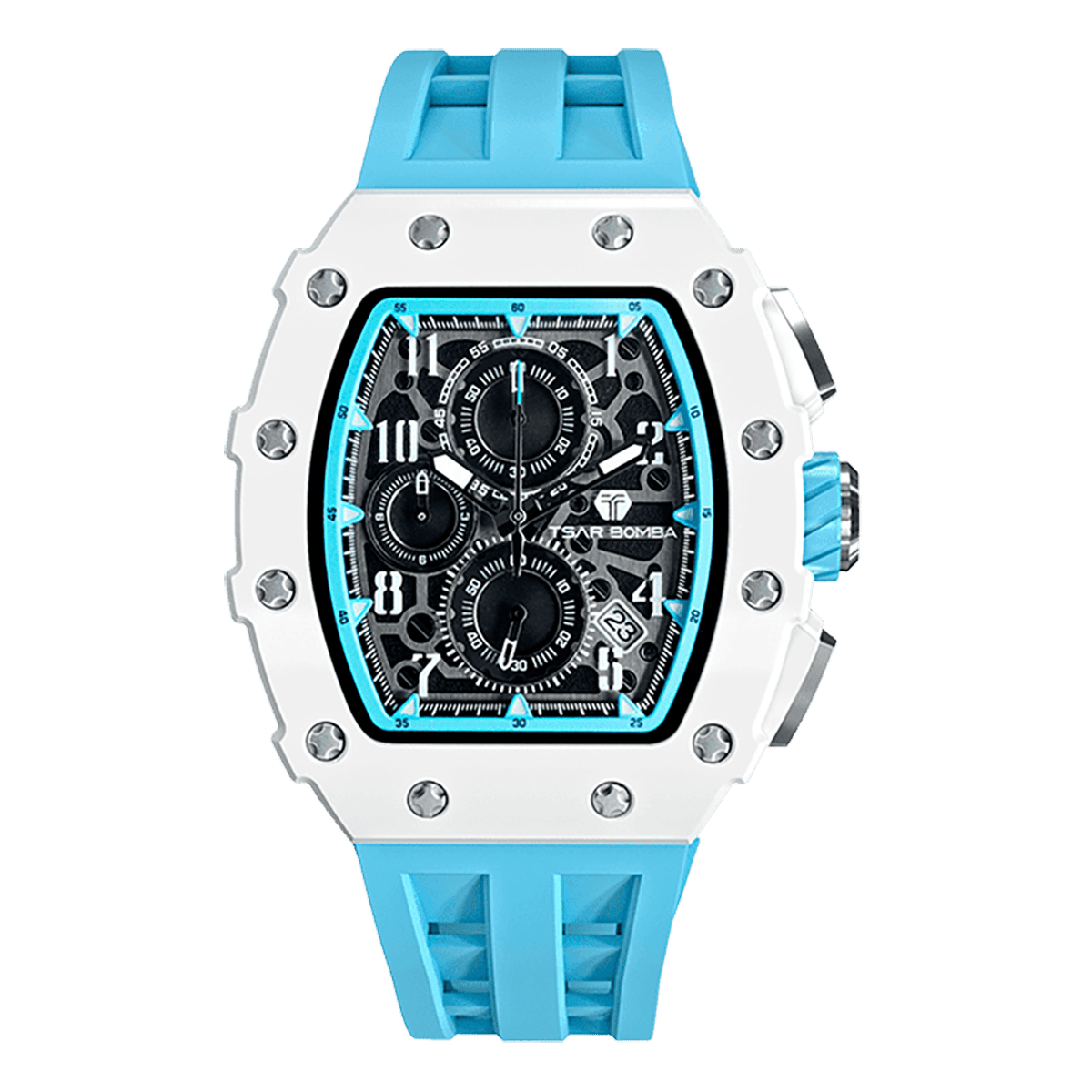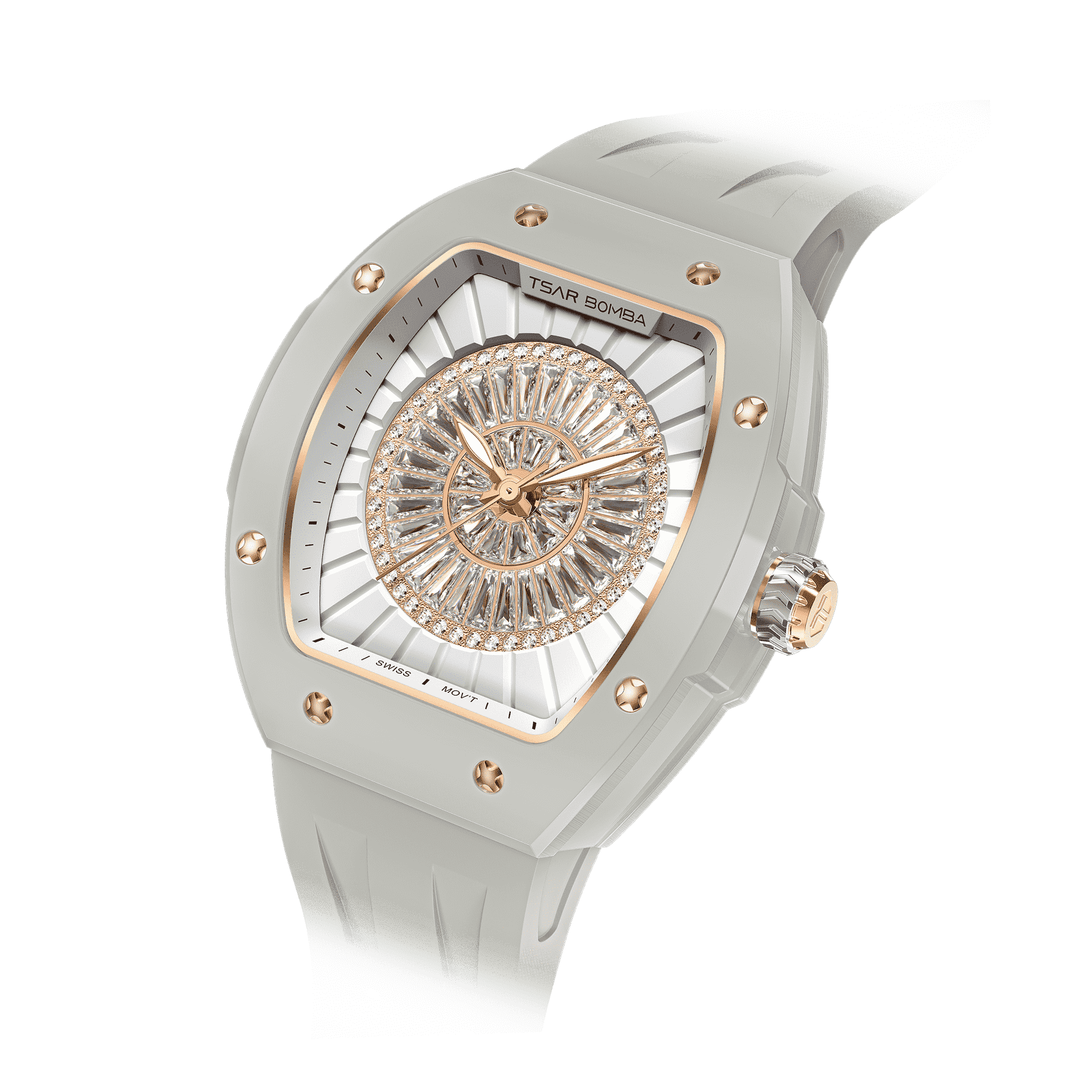 Tsar Bomba une un bisel y cristal frontal de zafiro completo con nuestra caja Chronite®, creando una fortaleza transparente donde el movimiento parece flotar en la luz. Lo que antes era exclusivo, ahora está al alcance de tu muñeca.