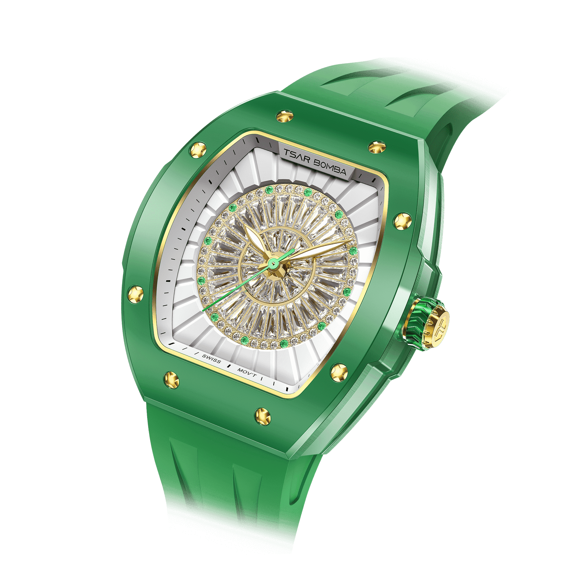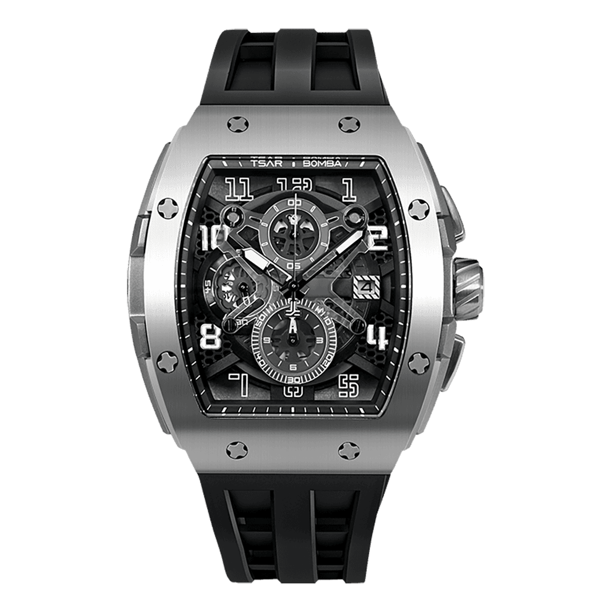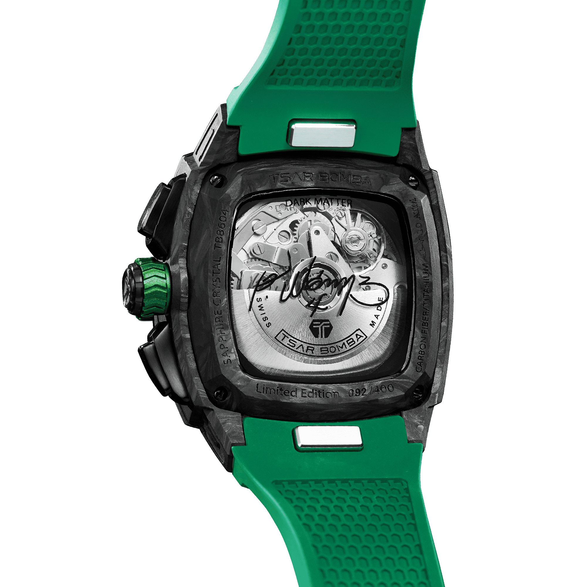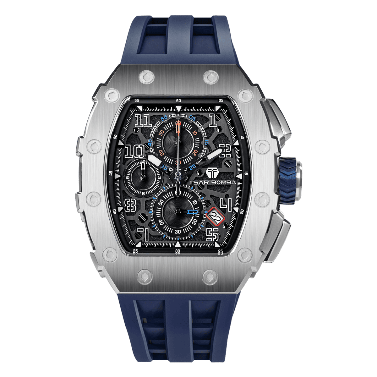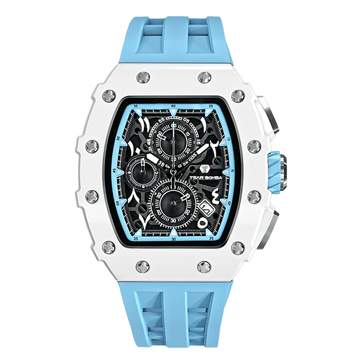 Tsar Bomba une un bisel y cristal frontal de zafiro completo con nuestra caja Chronite®, creando una fortaleza transparente donde el movimiento parece flotar en la luz. Lo que antes era exclusivo, ahora está al alcance de tu muñeca.