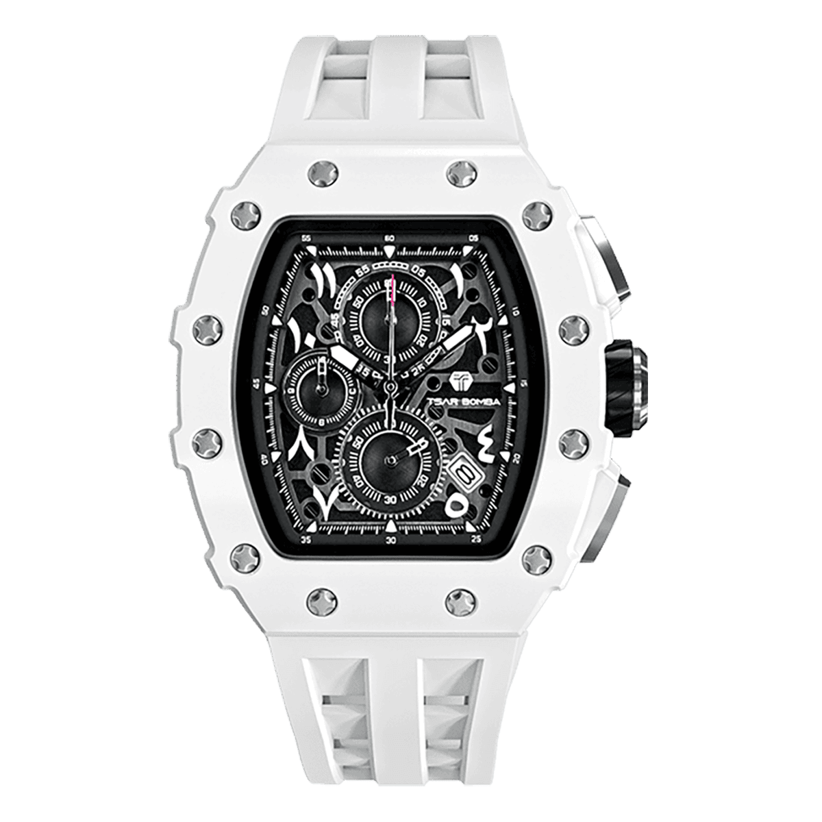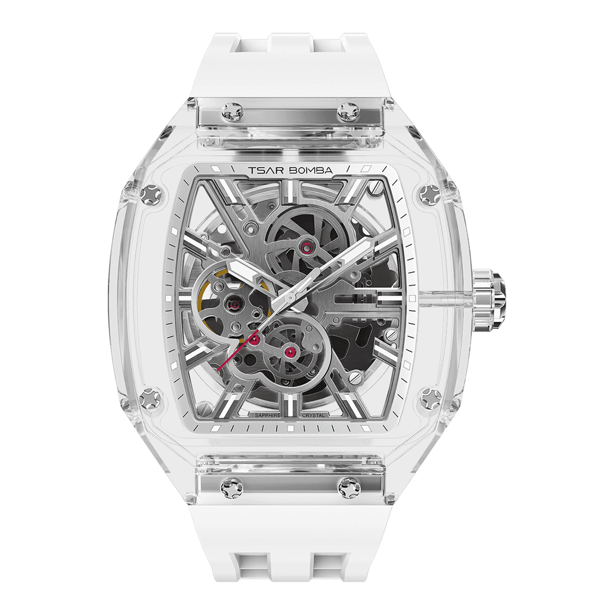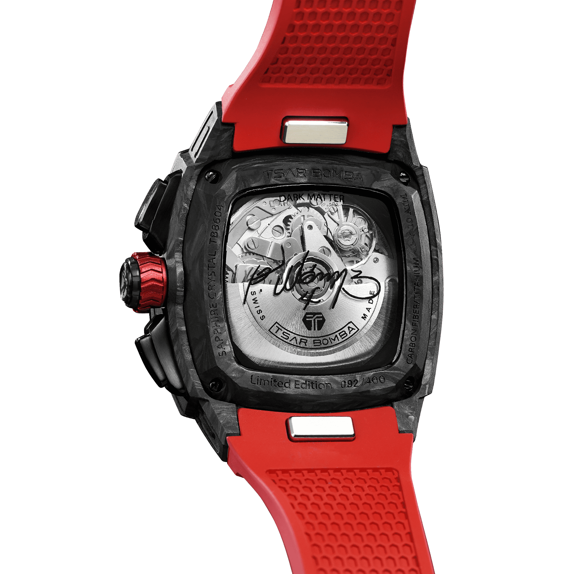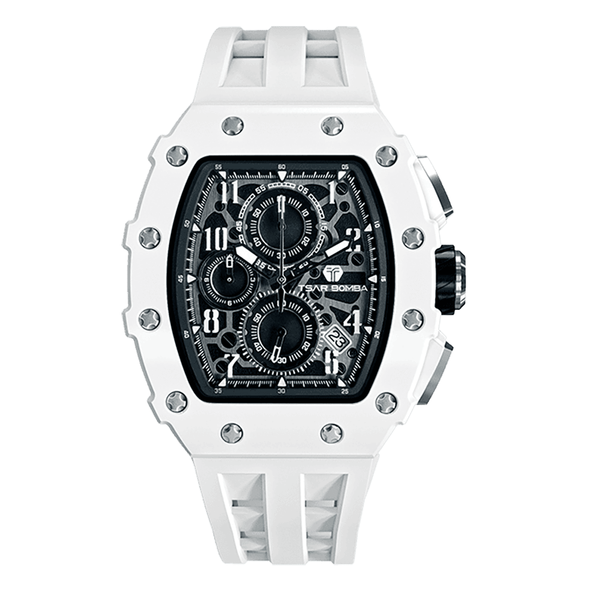 Tsar Bomba une un bisel y cristal frontal de zafiro completo con nuestra caja Chronite®, creando una fortaleza transparente donde el movimiento parece flotar en la luz. Lo que antes era exclusivo, ahora está al alcance de tu muñeca.