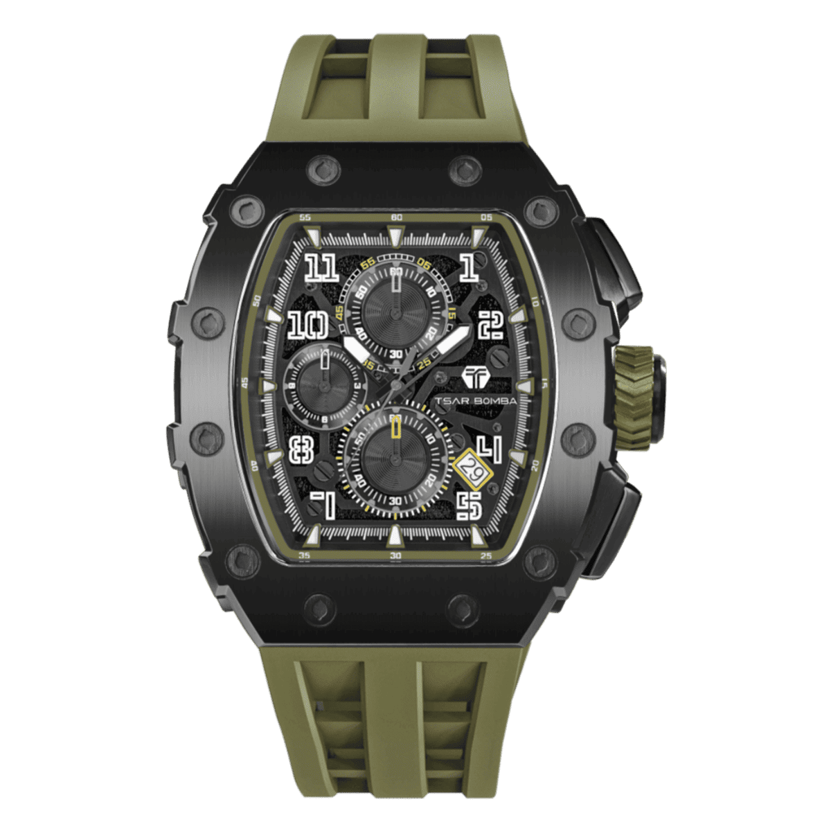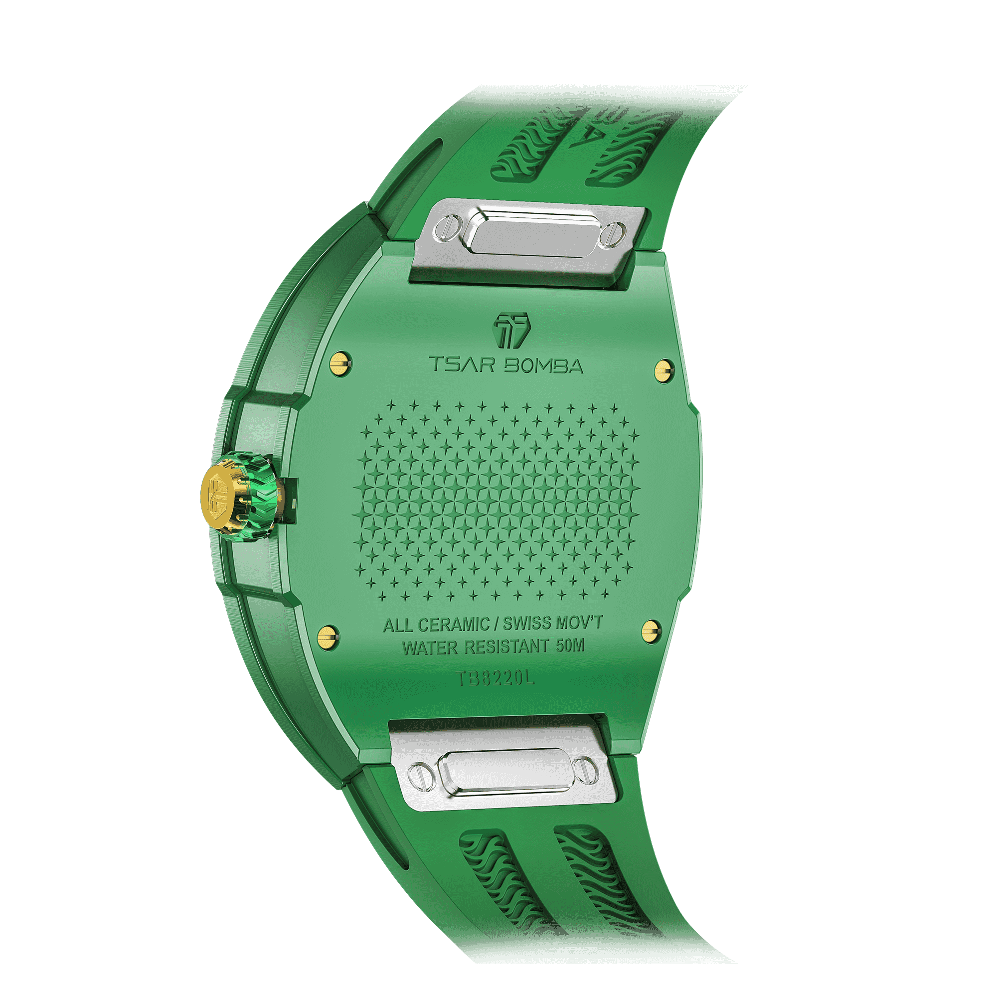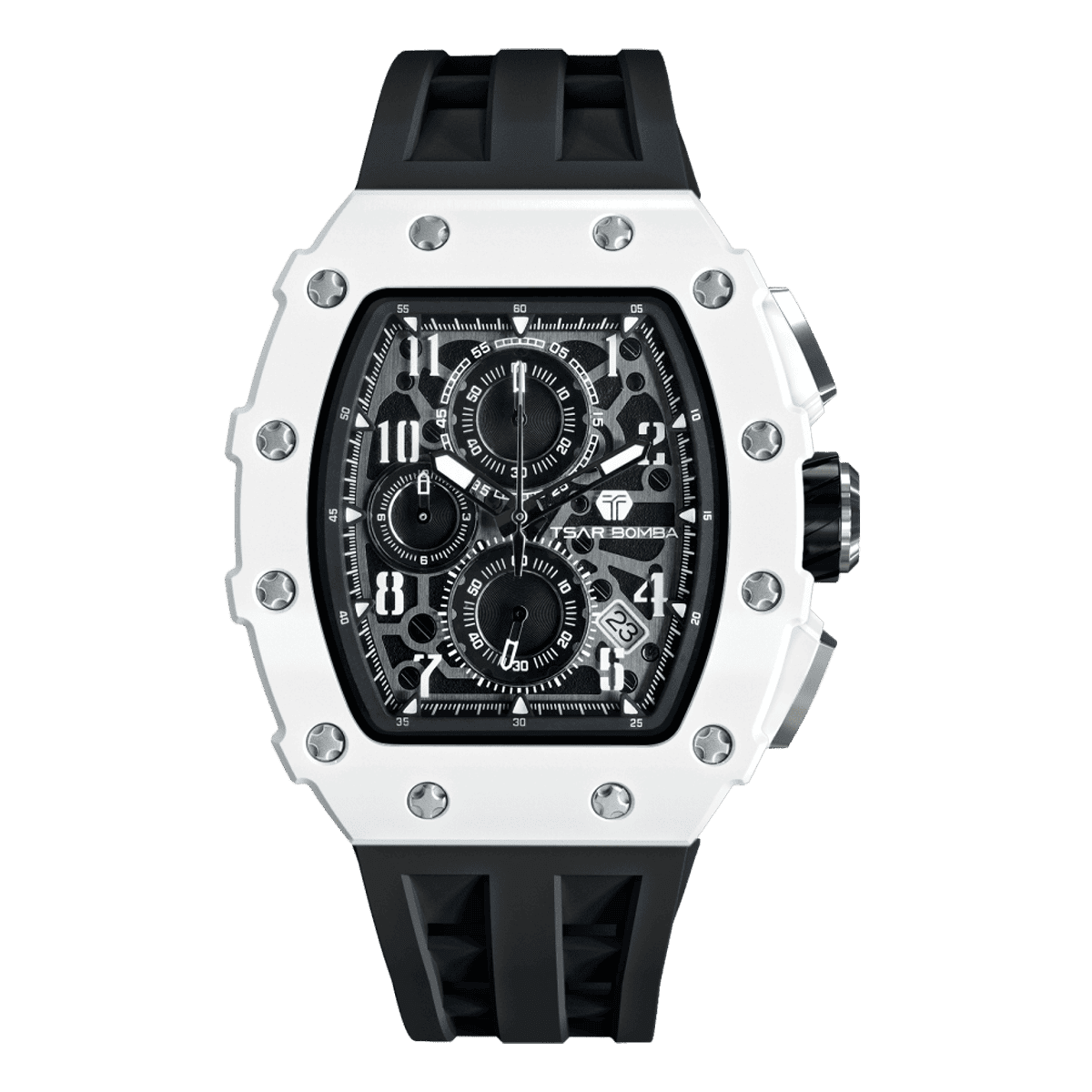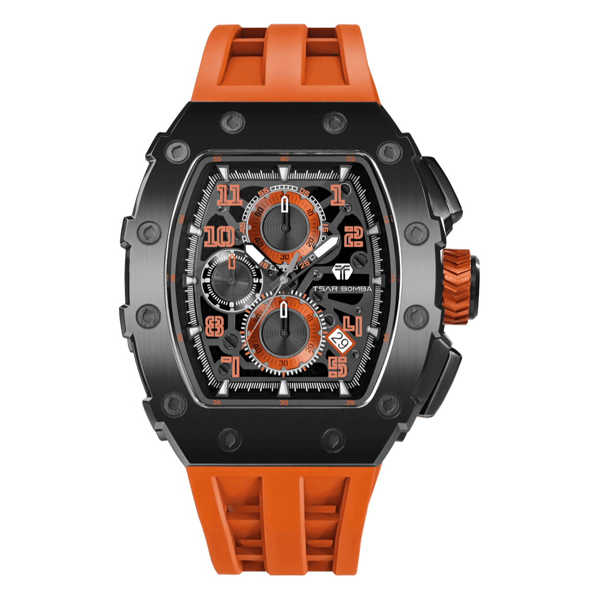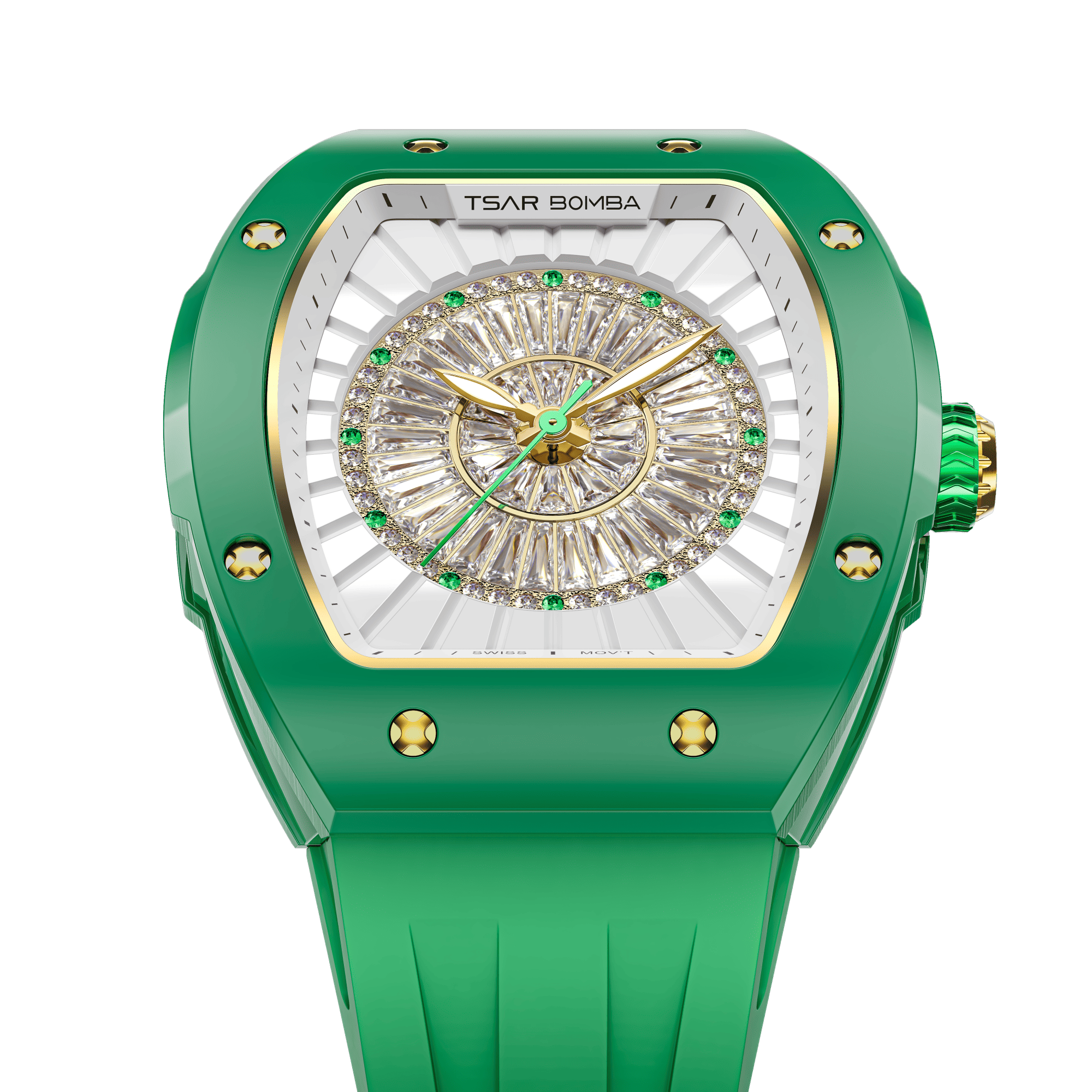 Tsar Bomba une un bisel y cristal frontal de zafiro completo con nuestra caja Chronite®, creando una fortaleza transparente donde el movimiento parece flotar en la luz. Lo que antes era exclusivo, ahora está al alcance de tu muñeca.