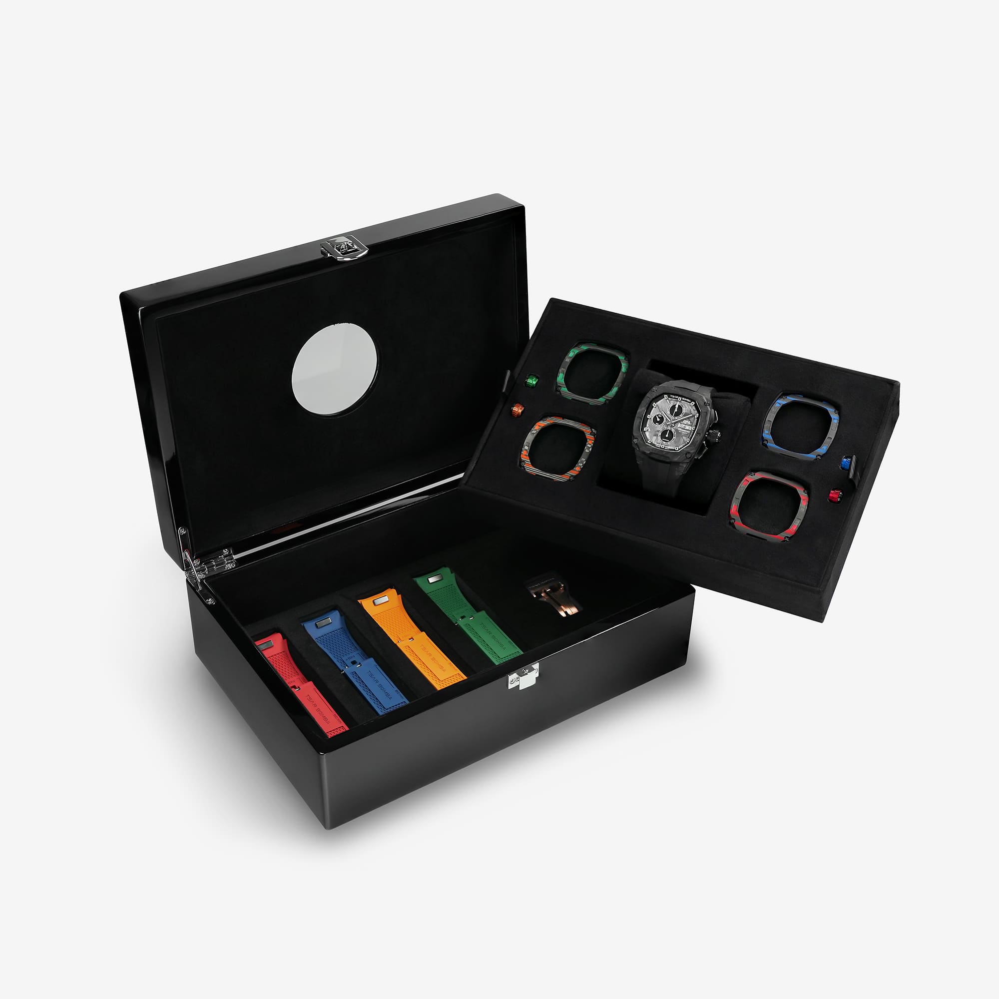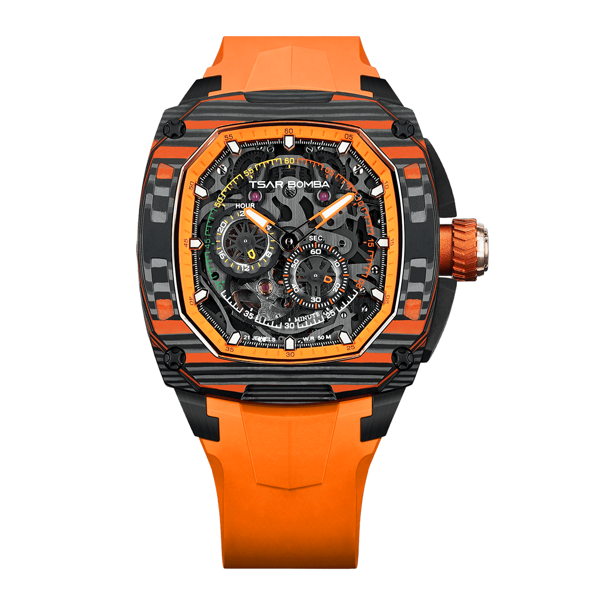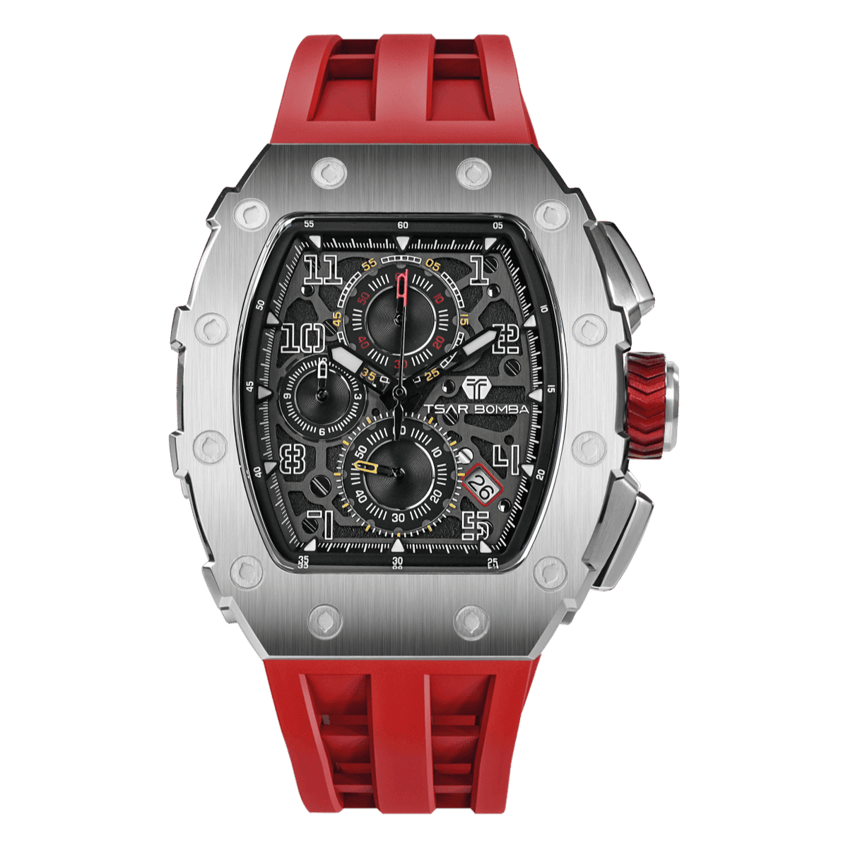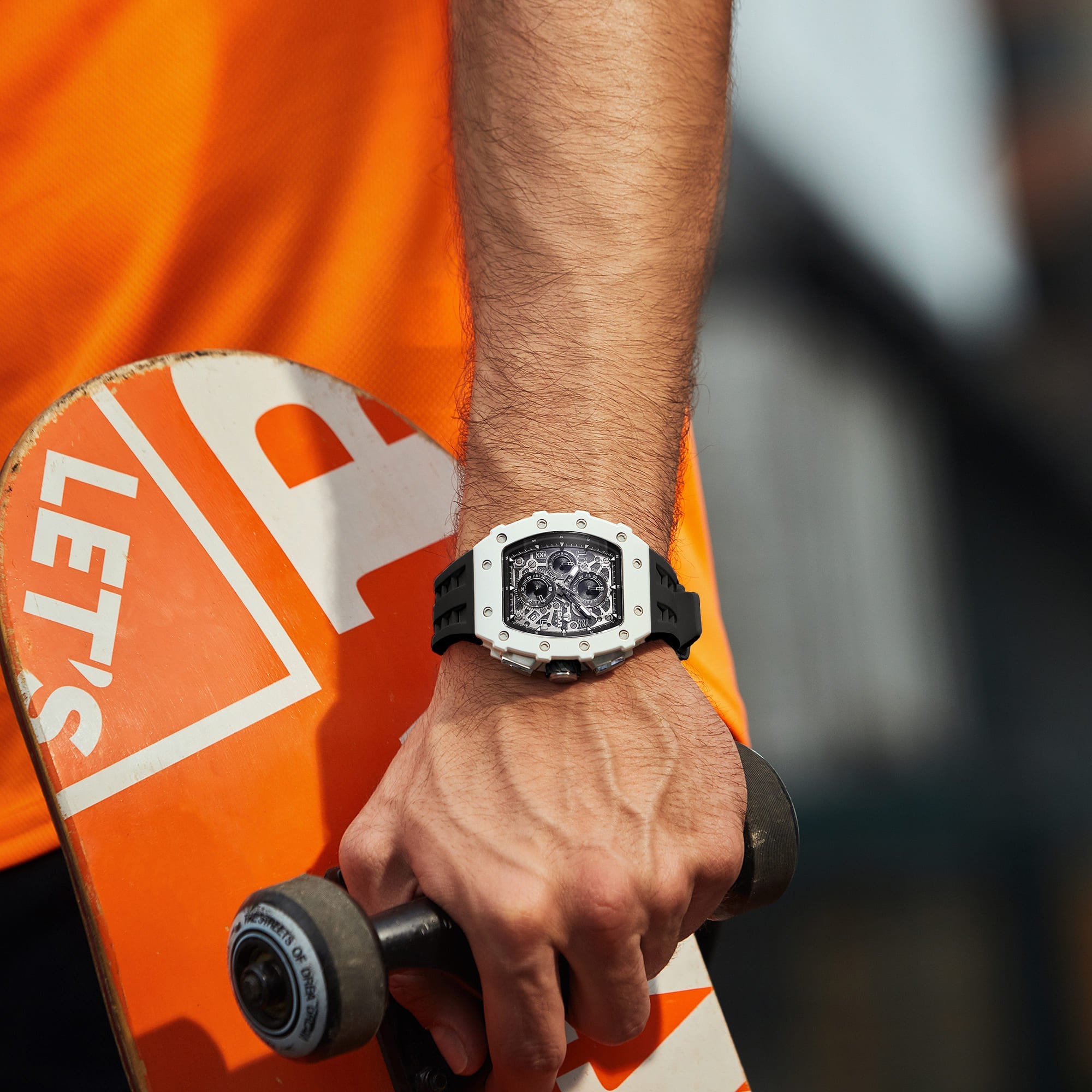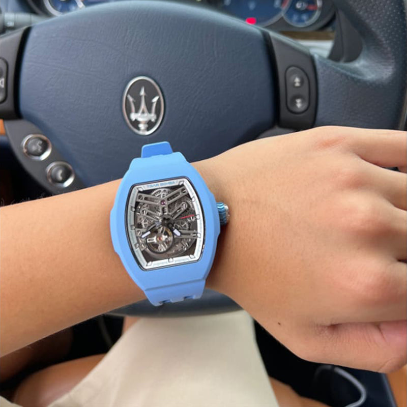 Tsar Bomba une un bisel y cristal frontal de zafiro completo con nuestra caja Chronite®, creando una fortaleza transparente donde el movimiento parece flotar en la luz. Lo que antes era exclusivo, ahora está al alcance de tu muñeca.