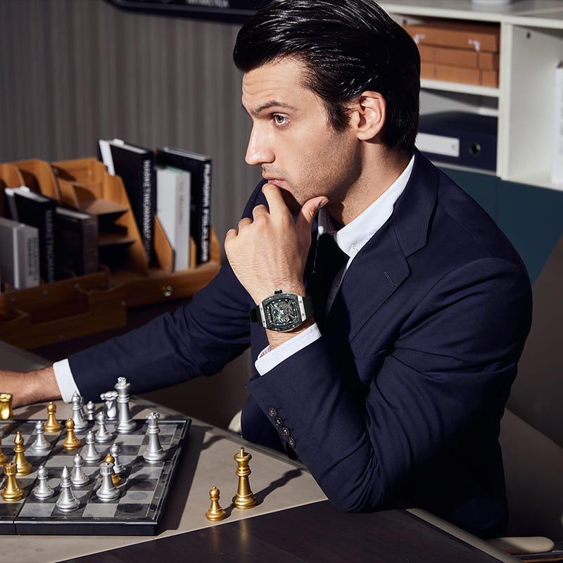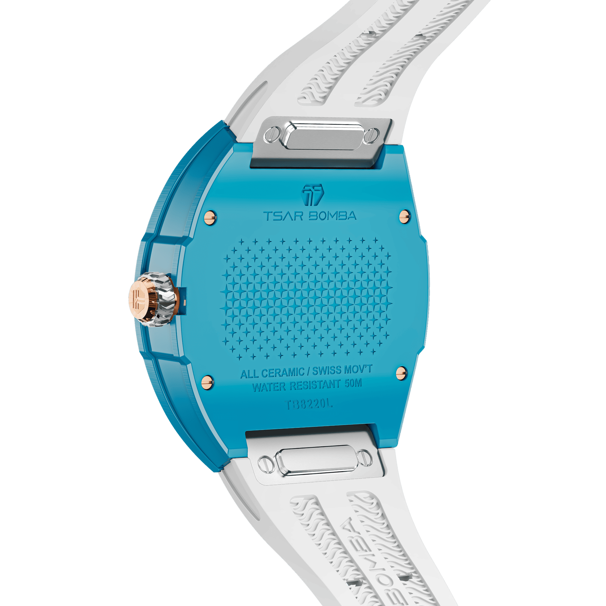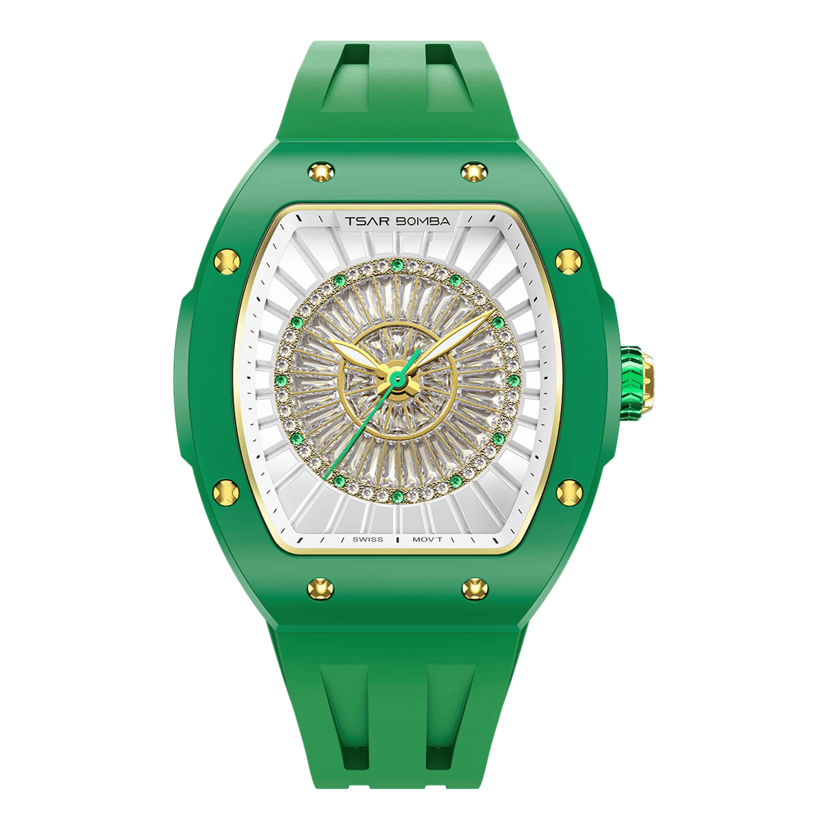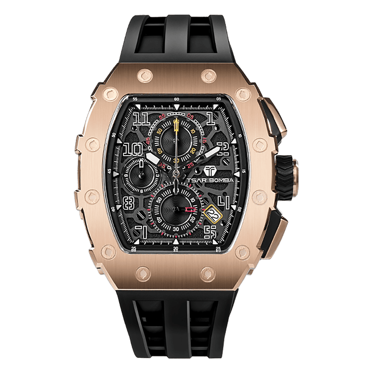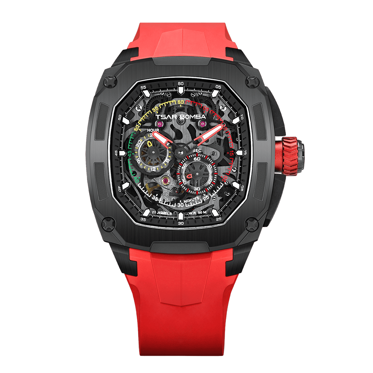 Tsar Bomba une un bisel y cristal frontal de zafiro completo con nuestra caja Chronite®, creando una fortaleza transparente donde el movimiento parece flotar en la luz. Lo que antes era exclusivo, ahora está al alcance de tu muñeca.