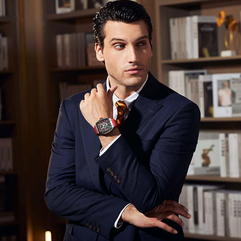Elegancia sin esfuerzo en la muñeca: un reloj que se mueve con porte, reflejando buen gusto y lujo discreto en cada gesto.